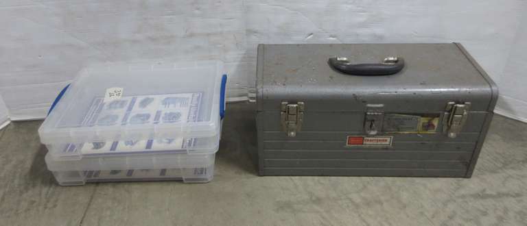 Craftsman Metal Toolbox, 8" x 9" x 18", No Tray; (2) Plastic Boxes, 10" x 14" x 3"D