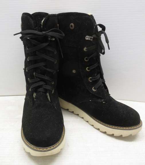 Suede Fuzzy Lace Up Front Combat Boots, Women's Size 9