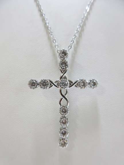 Cross Pendant with 11 Stones on a 19" Chain, Chain and Pendant are Marked 925, Jewelry Display Not Included