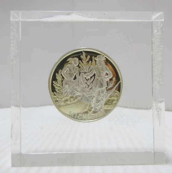 Older 1974 Sterling Silver Michigan Coin in Lucite Paperweight