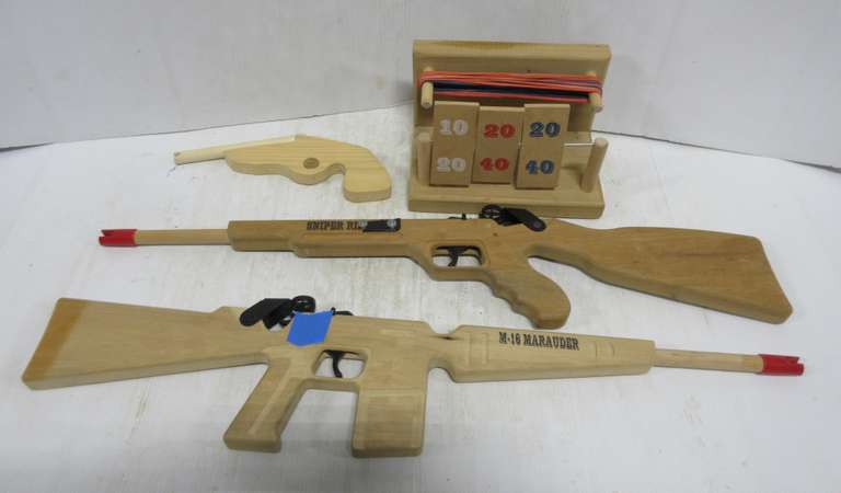 (3) Rubber band shooting guns, in like new condition