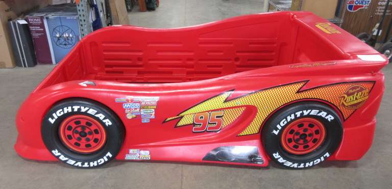 Lightning McQueen twin race car bed, 82”L, has some wear