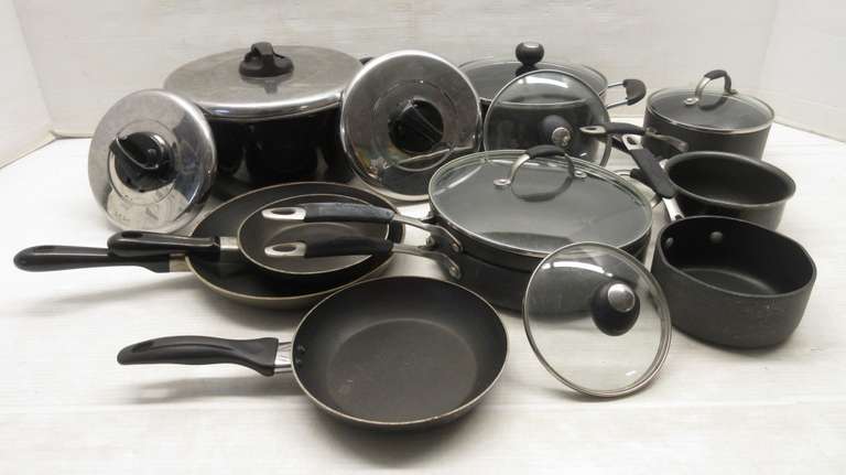 (10) Pots and Pans with (8) Lids: 5- Fry Pans with Lids, 3- One-Two-Quart Sauce Pans with Lids, and 2- Larger 8-12-Quart Pots with Lids