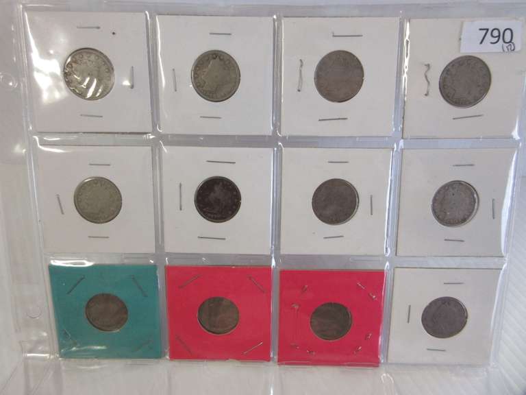 (12) Full date US liberty nickels, dated from 1899 to 1911