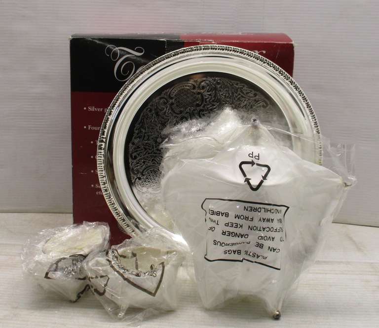Box of Taylor Smith cross stitch pattern china, and (2) large decorative shoes, all have wear, china has crazing