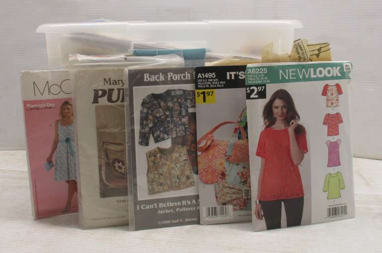 Over (50) Plastic box patterns, dresses to purse, in good condition