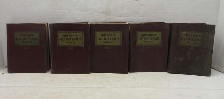 (5) Motor's flat rate parts manuals: 1960, 1964, Two- 1962, and 1966, in good condition