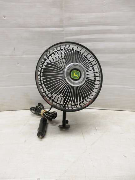 John Deere oscillating fan, plugs into 12V power source, works great, 7"Dia