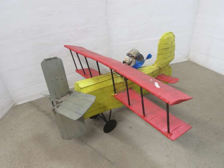 Snoopy and biplane yard art, handmade and painted, wingspan- 27 1/2", needs cleaning, shows wear