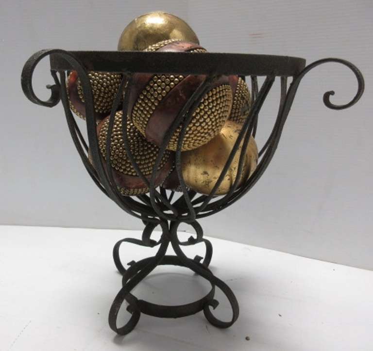 Large All-Metal/Wrought Iron Pedestalled Pot with Decorative Balls, Table Centerpiece, Heavy, Well Made