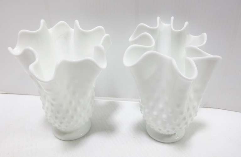 (2) Older Milk Glass Hobnail Vases: 1- Embossed "Fenton, 1- Possibly Older Fenton