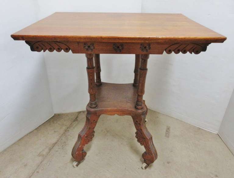 Antique Quarter Sawn Oak Lamp Stand with Massive Claw and Glass Ball Feet