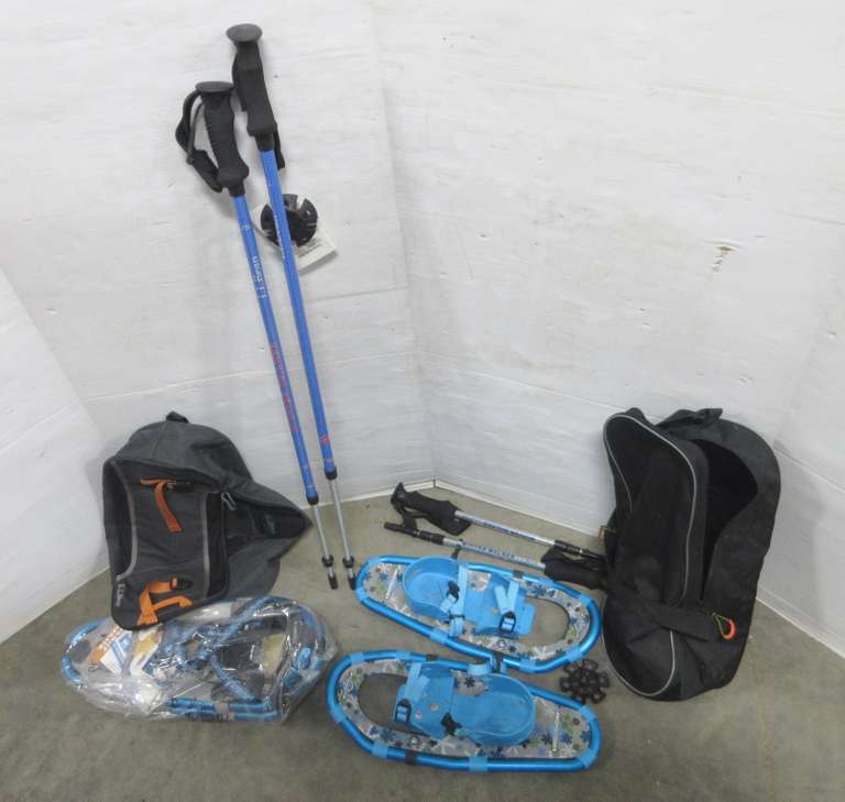 (2) Pairs of Adjustable LL Bean Snow Shoes in Storage Bags with Sticks