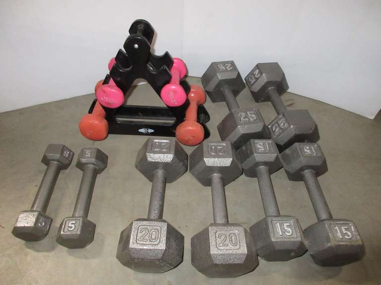 Dumbbell Set, Stand, and (2) Lighter Pairs of Dumbbells