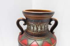 Norleans Japan Hand Painted Pottery Vase, Horse and Soldiers, Has Handles