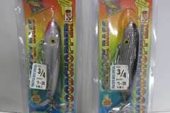 Fall Species Fishing Lures with Tackle Logic Box, Mostly Pike and Muskie with (2) Extra Large Spinners, (5) Large Spinners, Flatfish, (3) Crank Baits, (5) Spoons, and (4) Wood Choppers: 2- New