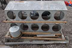 Eight-Hole Steel Chicken/Hen Nest, (2) Steel Chicken Feeders, and a Steel Chicken Waterer