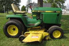 John Deere 420 Lawn Tractor, (Showing 774 Hours), Onan Engine, Hydrostatic Drive, Front Hydraulics, Approximately 60" Cut, Runs with the Choke on.
