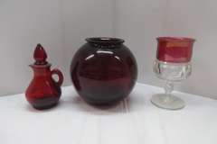 Collector's Ruby Red Art Glass Pieces, Include: Large Tall Swirled Vases, Goblet, Bowls, Stained Glass Floral Piece, and More