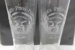 Set of Dr. Pepper's Phos-Ferrates Collectibles: Large Pitcher and (6) Glasses, Etched