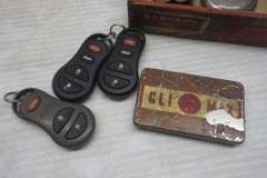 Black Franklin Planner, NOS; (3) Older Key Fobs: 2- Chrysler and 1- Jeep, No Batteries; Older Renaldo Cigar Box; Antique Climax Tobacco Tin and Older Buttons from the Detroit Police and the Navy; American Legion Pin; "Bill Cooper's Place" Trade Token; Antique Pocket Watch, Case Only with Crystal