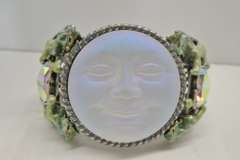 Kirks Folly Seaview Moon Cuff Bracelet, Mythical Lions on Sides, Hand Painted Enamel with A.B. Heart Crystal, and Mini Seaview Moon Necklace, Both have Glass Faces, Necklace has Swarovski Elements, Looks Like an Eye, Matches Lot Nos. 1206 and 1209, Jewelry Display Not Included