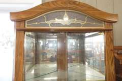 Corner Curio Wood Grain Cabinet, Corner and Glass with Lights