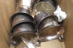Silver-Plated Bowl, 19"Dia; Tray, 19"Dia; Extra Bowl, 10"Dia; (11) Cups; Silver-Plated Ladle, Has Wear