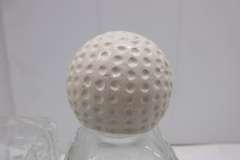 (3) Liquor Decanters: 1- Whiskey, and 1- Scotch Both with Golf Ball Tops, 9"H; 1- Cut Glass, 10 1/2"H