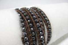 Authentic Chan Luu wrap bracelet, hematite with brown leather, Jewelry display is not included