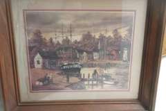 Large wood framed mirror and small boat picture, frame is 17" x 20"